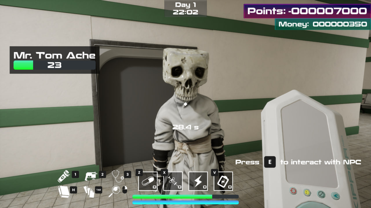 Войдите в роль санитара в частной психиатрической клинике, где забота граничит с выживанием. Ваша дневная смена — это искусство исцеления: вы сопровождаете пациентов на процедуры, управляете медицинскими аппаратами нового поколения, чтобы стабилизировать их хрупкое душевное равновесие. Каждый успех приносит улучшение, каждый провал приближает хаос.
